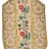 Preteksty z tafty w kolorze białym, pokrytej ściegiem łańcuszkowym. Wzór o splotach rządkowych, lansowany barwnymi nićmi jedwabnymi i nićmi o oplocie metalowym w kolorze złotym. Wzór z motywem falistej wici roślinnej z polnymi kwiatami, kłosami zbóż oraz kiściami winogron.